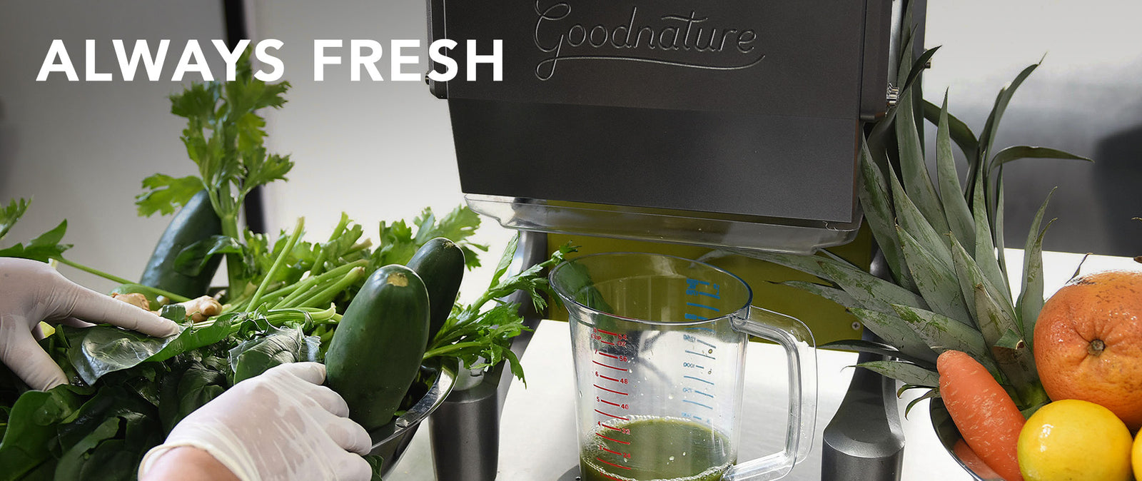 Our Juices are made with a REAL hydraulic juice press. This extraordinary cold-pressing technology retains the maximum amount of life force and nutrients possible. No heat or cutting of enzymes from centrifugal blending. Always raw! Never blended! Never masticated! Never pasteurized!